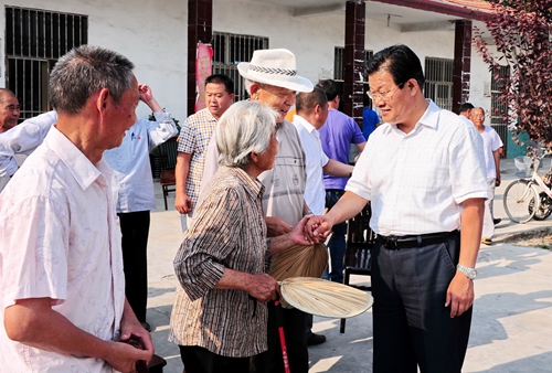 图为区委书记张玉华在新驿镇西东村参加“两学一做”学习教育暨“党员活动日”活动时与老党员亲切交谈。