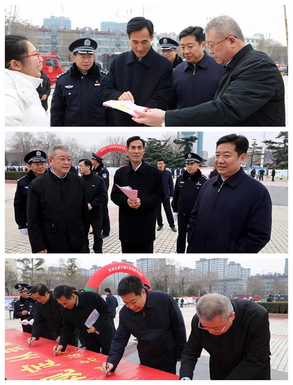 1月10日是全国第34个“110宣传日”,农历春节也即将到来,为确保节日期间平安稳定,兖州区在九州法治广场组织开展“烟花爆竹禁放万人签名暨110机制改革集中宣传”活动。兖州区委常委、政法委书记马刚,济宁市应急管理局副局长焦恩玉,副区长、分局局长张修斌出席活动,区烟花爆竹禁放成员单位、110应急联动单位20余家参加。
