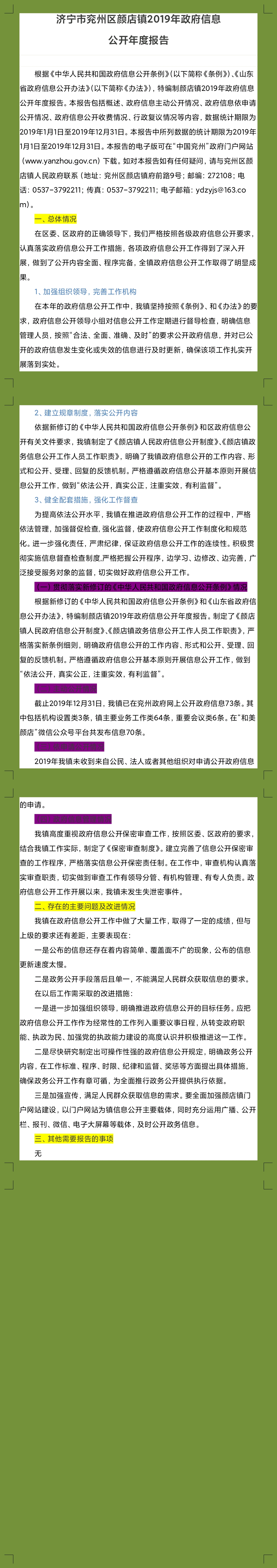 济宁市兖州区颜店镇2019年政府信息公开年度报告