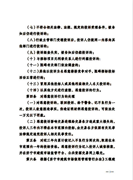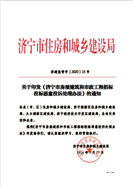 关于印发《济宁市房屋建筑和市政工程招标投标恶意投诉处理办法》的通知