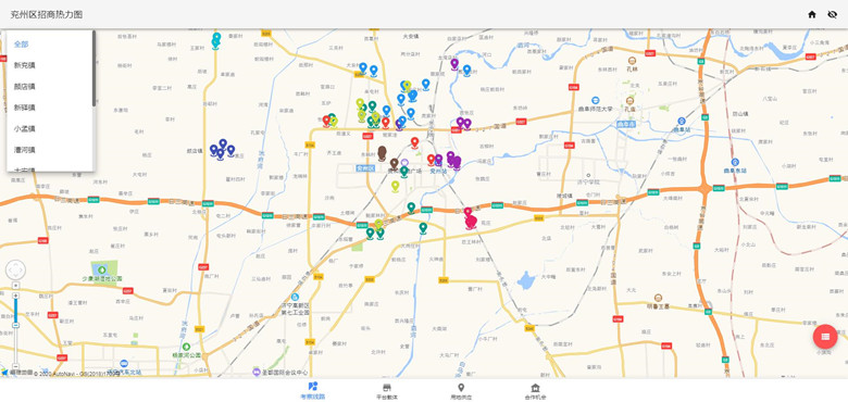 兖州区下辖10个镇街,拥有省级以上开发区1个,36家存量外资企业。“招商热力图”运用地理信息“一张图”技术,集成了全区投资考察、平台载体、产业用地、投资合作四大业务数据,解决了投资者选哪、选谁的问题。有了这个“招商热力图”,投资客商不用“面对面”,只要“屏对屏”就可全面、生动了解到兖州各类招商信息“硬货”,得到实时高效的投资攻略。