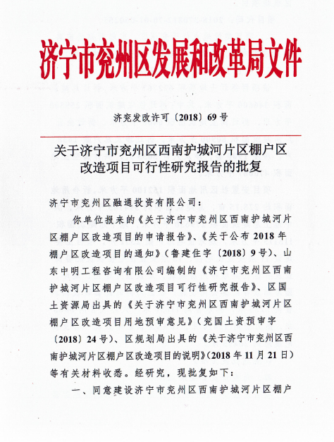 【西南护城河片区棚户区改造项目】可行性研究报告的批复