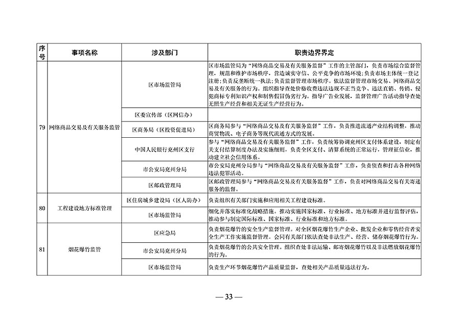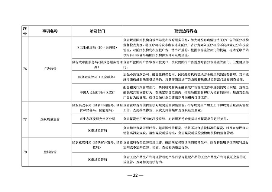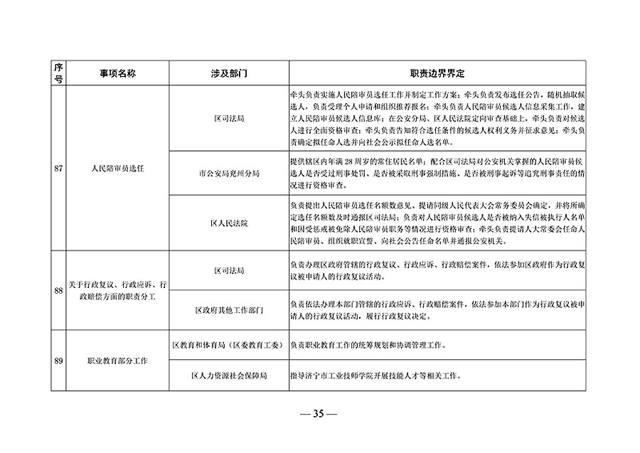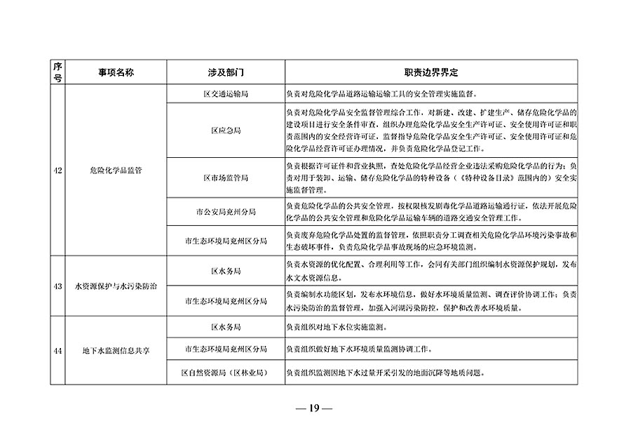 济宁市兖州区政府部门职责边界清单