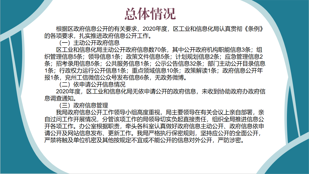 济宁市兖州区工业和信息化局2020年政府信息公开工作年度报告(图解)
