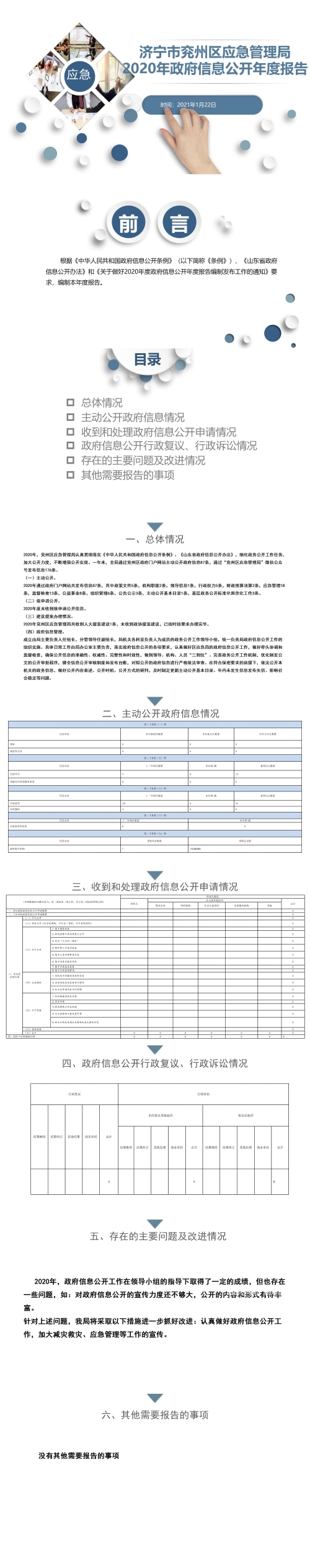 济宁市兖州区应急管理局2020年政府信息公开工作年度报告