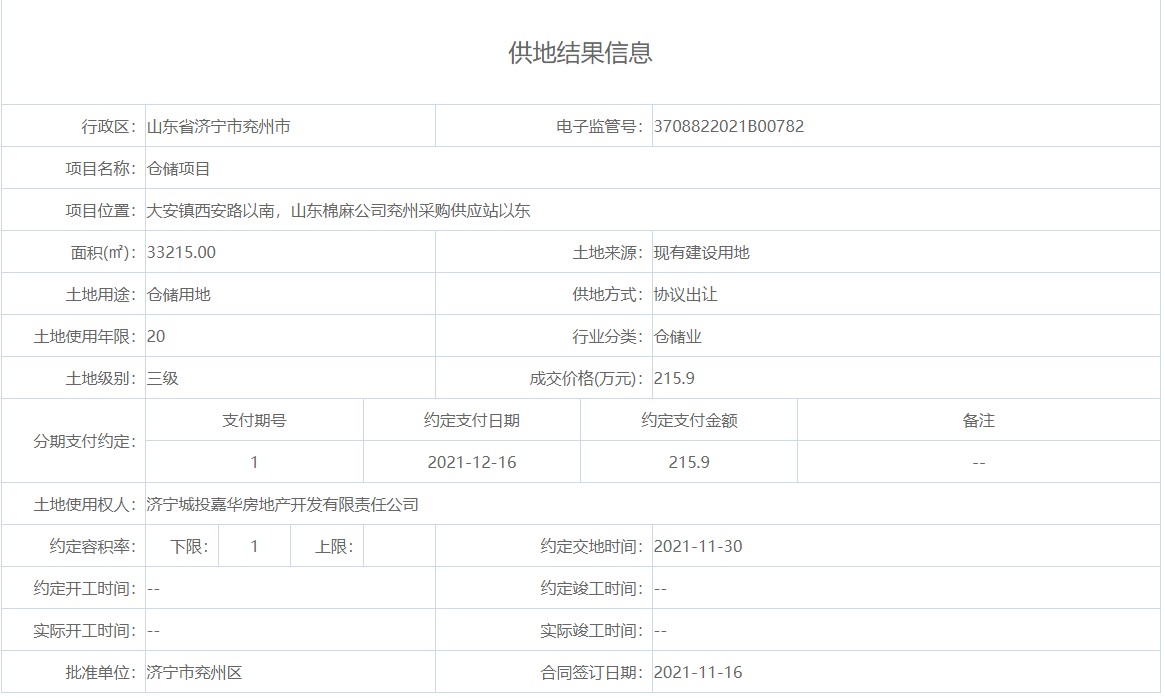 土地出让结果
