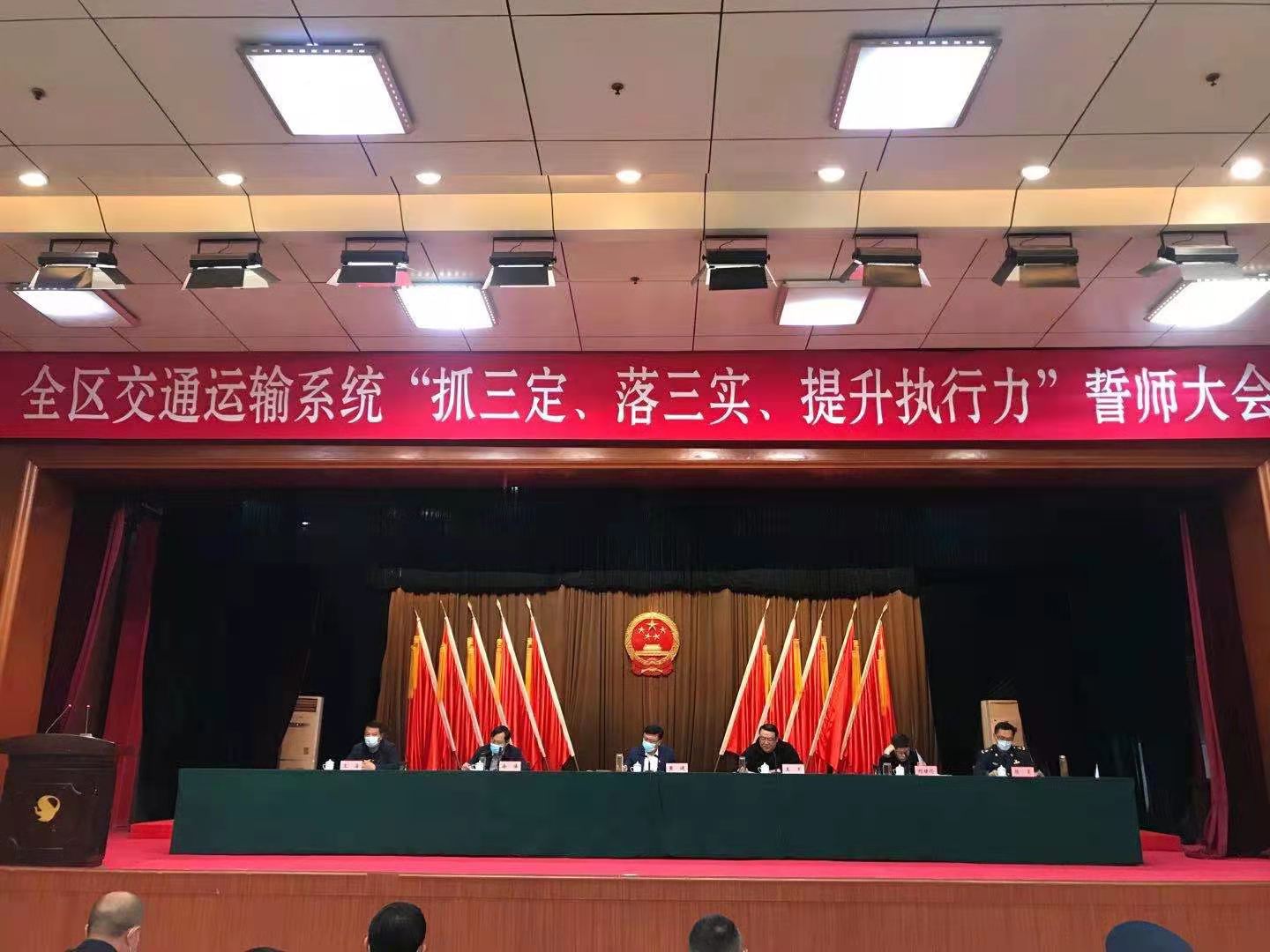 3月2日,区交通运输局召开全区交通运输系统“抓三定、落三实、提升执行力”誓师大会,深入贯彻落实全区加强作风建设提升干部执行力动员大会精神,安排部署2021年全区交通运输系统重点工作,定任务、定人员、定时限,讲实话、办实事、求实效,进一步提振精气神、强化执行力,确保各项工作取得新气象新进展新成效。