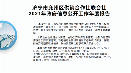 济宁市兖州区供销合作社联合社2021年政府信息公开年度报告
