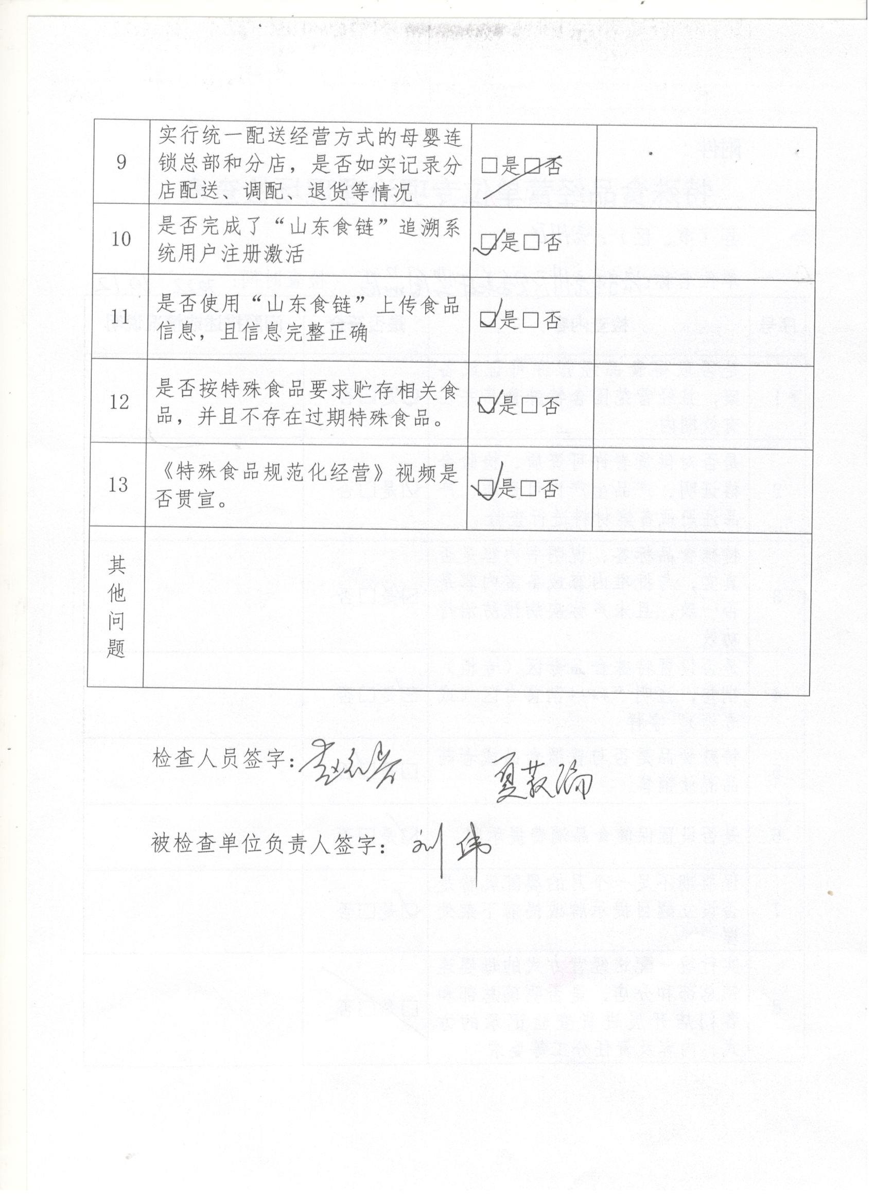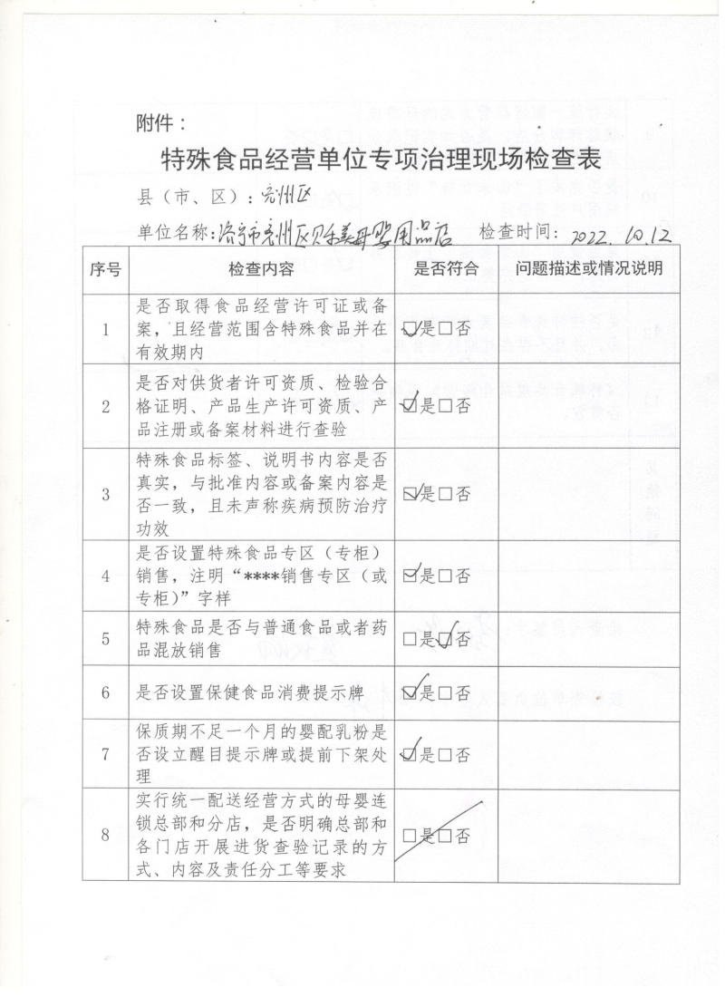 【特殊食品生产经营监督检查结果】济宁市兖州区贝乐美母婴用品店检查结果记录表