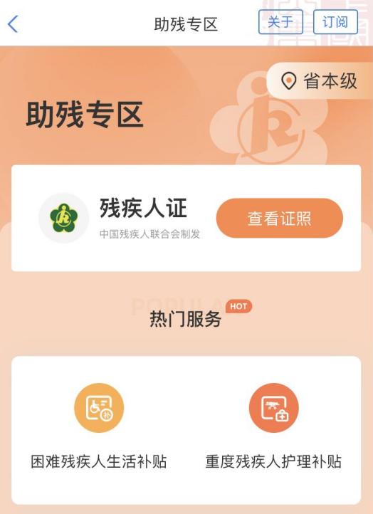 进入专区后,如果您已经持有残疾人证,可点击顶部“查看证照”,一键查看或出示电子残疾人证。