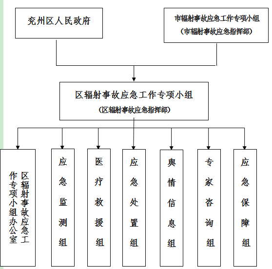 区生态环境委员会下设区辐射事故应急工作专项小组,负责辐射事故应对工作。组成成员如下: