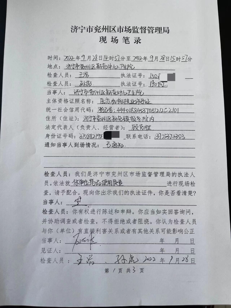 【医疗机构使用药品质量安全监督检查结果】济宁市兖州区新兖中心卫生院检查记录表