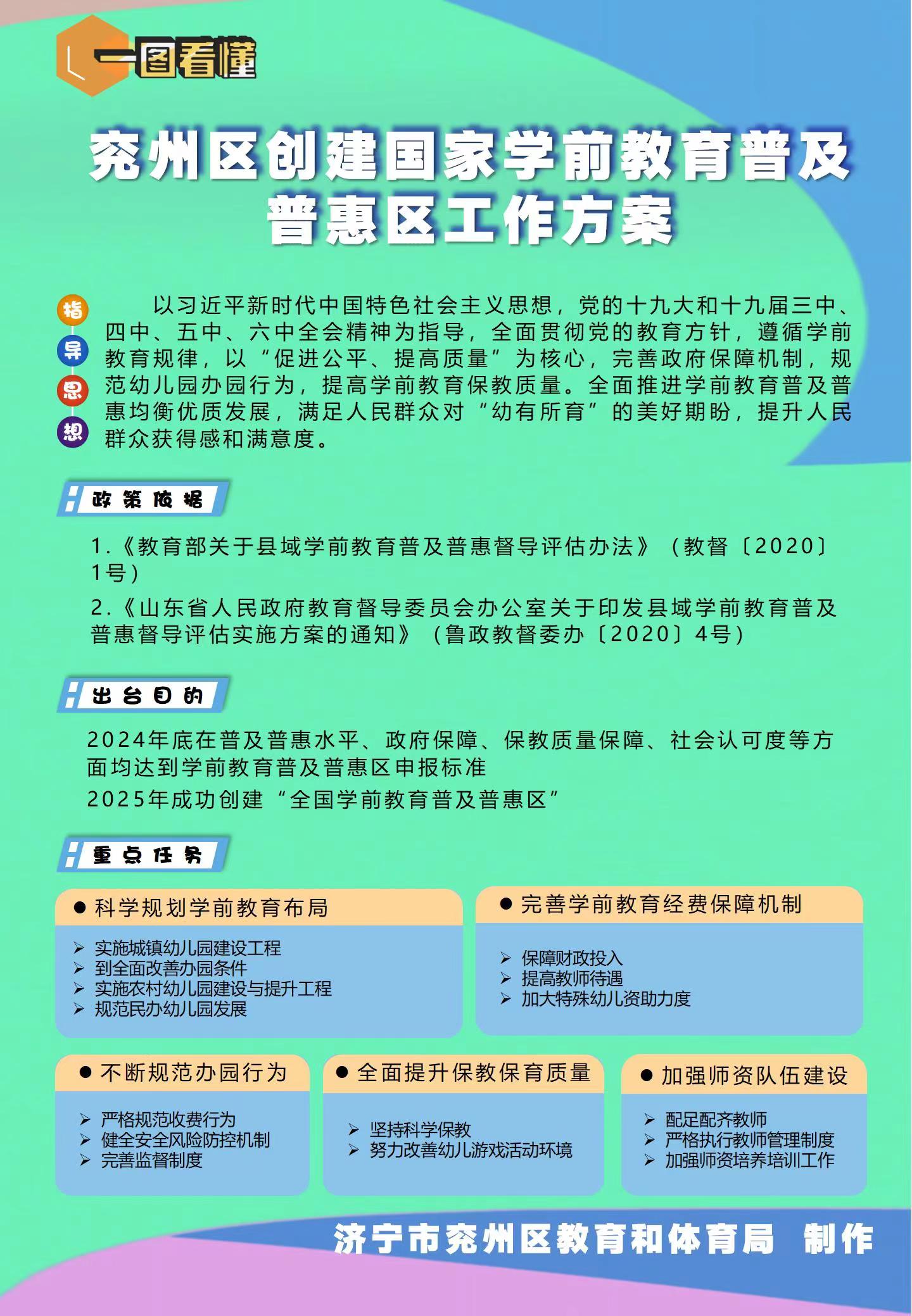 【一图看懂】济兖政办发〔2022〕3号 济宁市兖州区人民政府办公室关于印发济宁市兖州区创建国家学前教育普及普惠区工作方案的通知