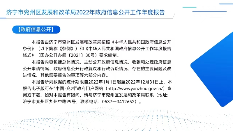 济宁市兖州区发展和改革局2022年政府信息公开工作年度报告