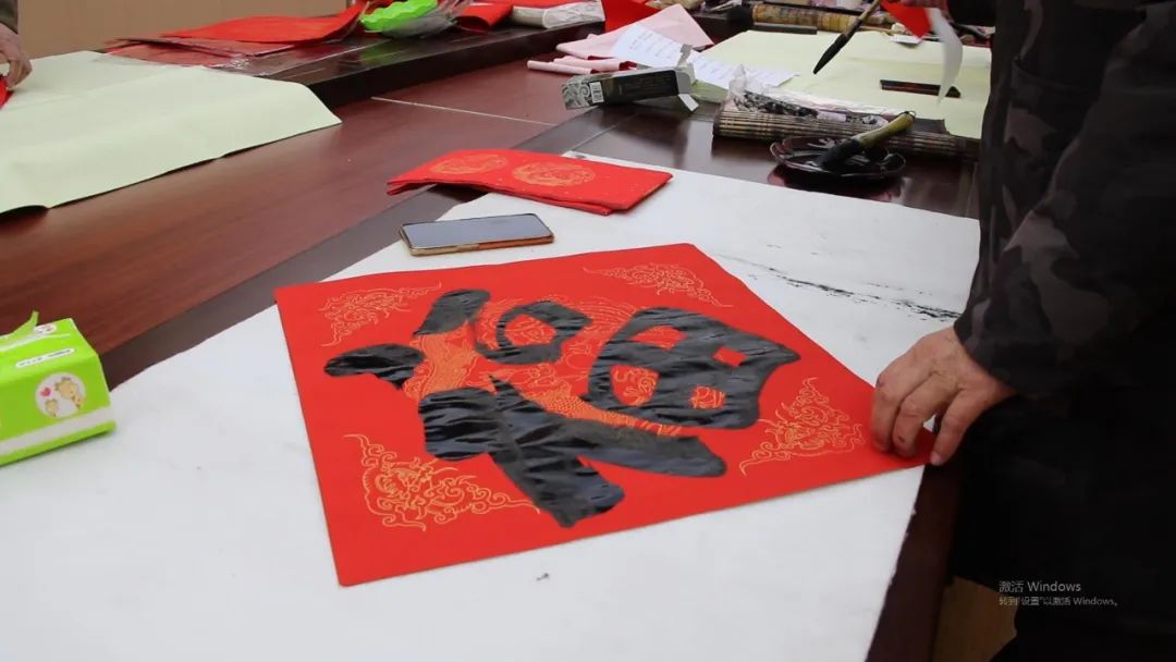 此次活动,区退役军人事务局特意邀请10位退役军人书法家,与军休干部们一同带来一场书画艺术盛宴。他们将真诚的祝福付诸笔端,清蘸墨水,寥寥数笔,墨宝便行云流水般跃然于红色宣纸之上,不知不觉间充满浓厚敬意和拥军爱国、爱党亲民之情的春联与“福”字铺满了活动场地。