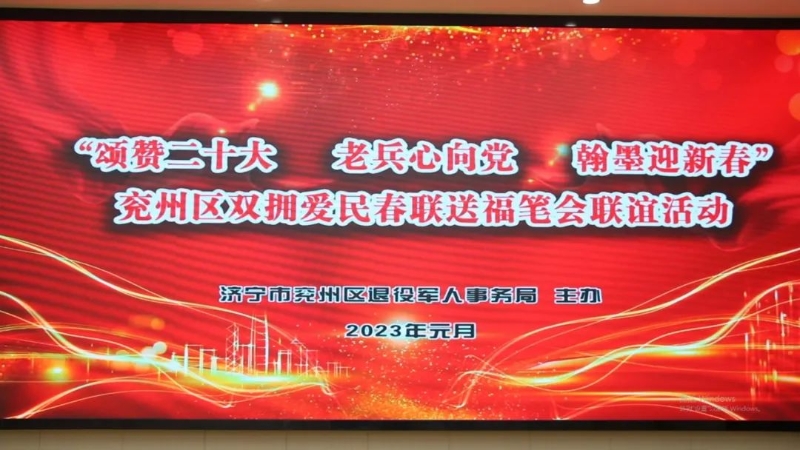 翰墨飘香映瑞雪 迎春接福暖人心——兖州区开展“颂赞二十大 老兵心向党 翰墨迎新春”双拥爱民春联送福笔会联谊活动