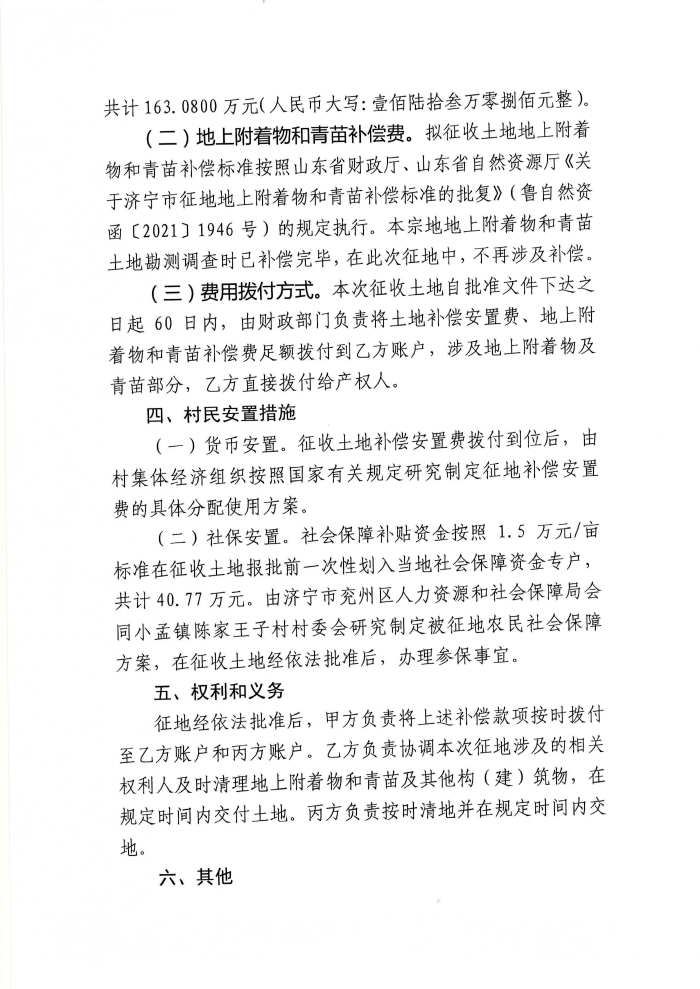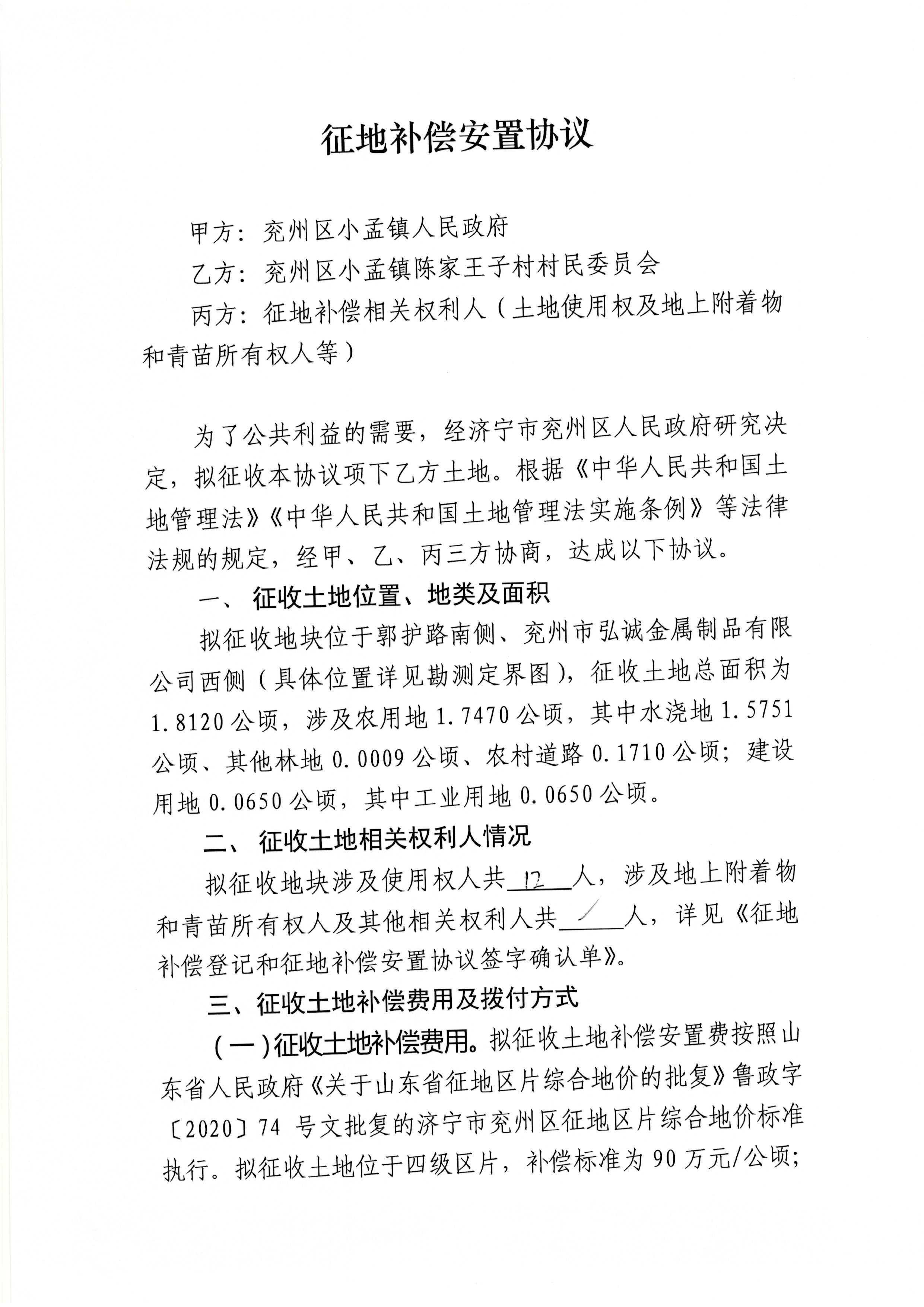 征地补偿安置协议(征收小孟镇陈家王子村土地)