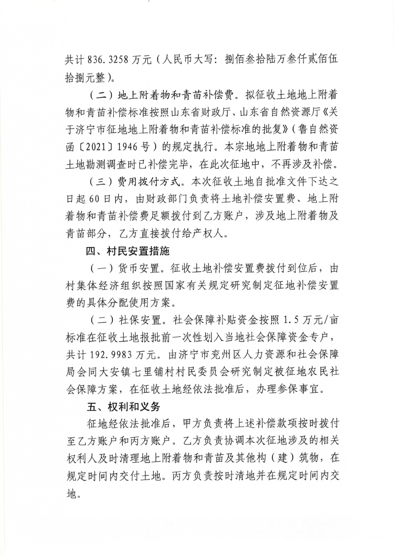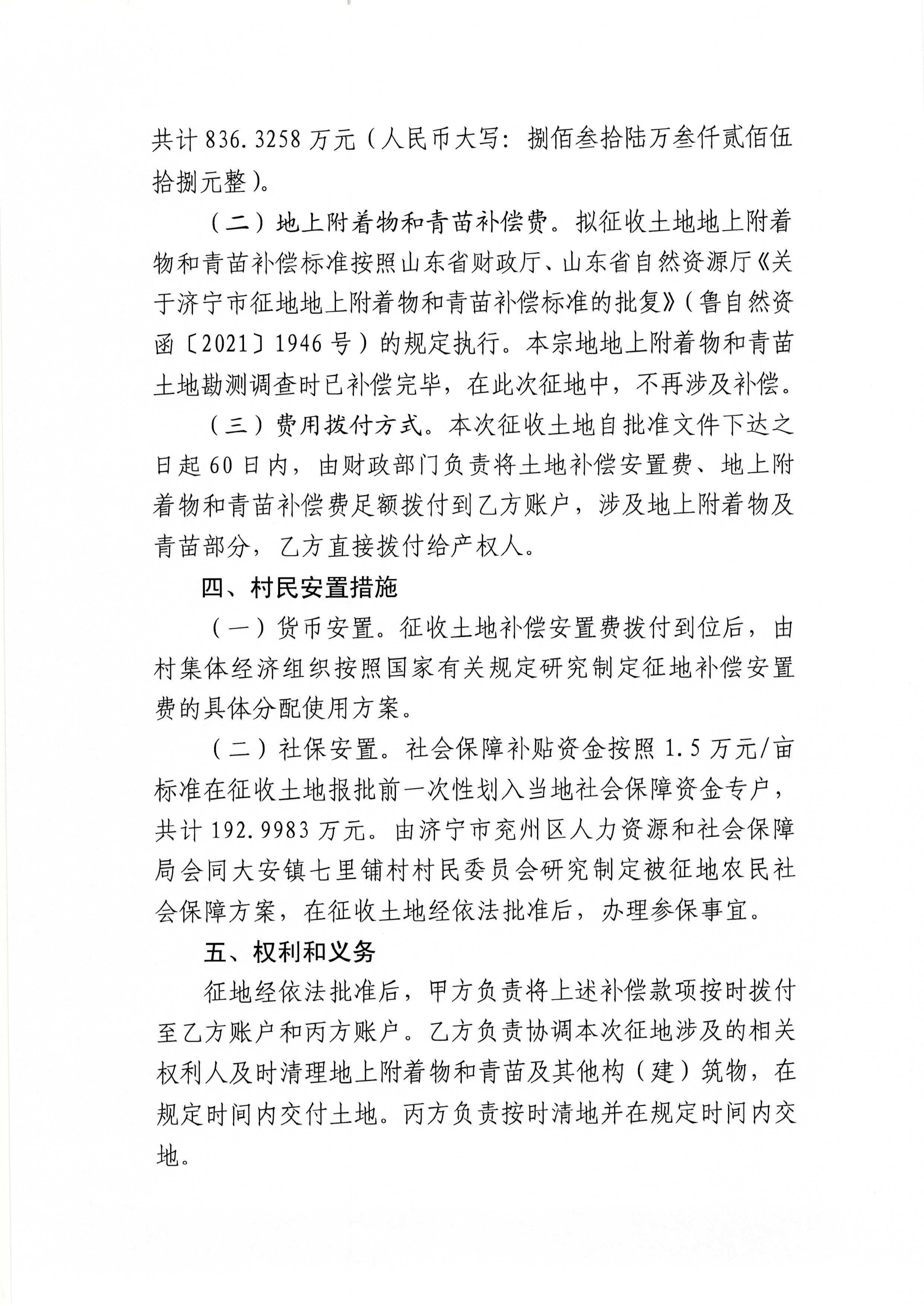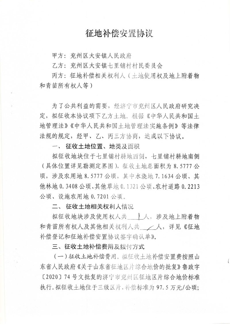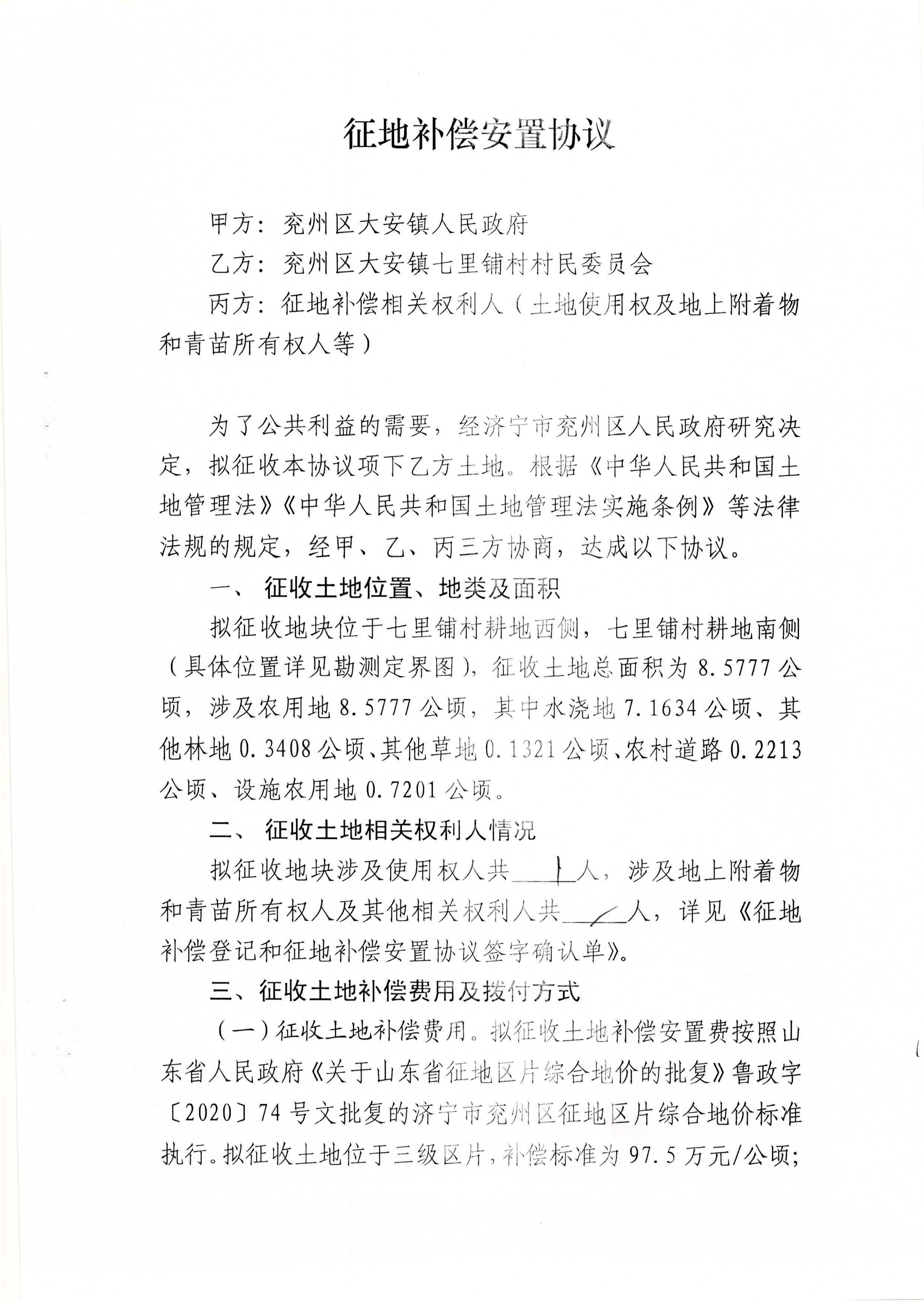 征地补偿安置协议(征收大安镇七里铺村土地)