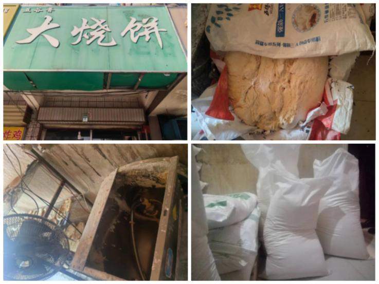 上榜理由:操作间内卫生脏乱差,设施设备未定期清理,食品原料未离地存放,半成品存放不规范,“四防”设施不齐全,个人物品随意摆放。
