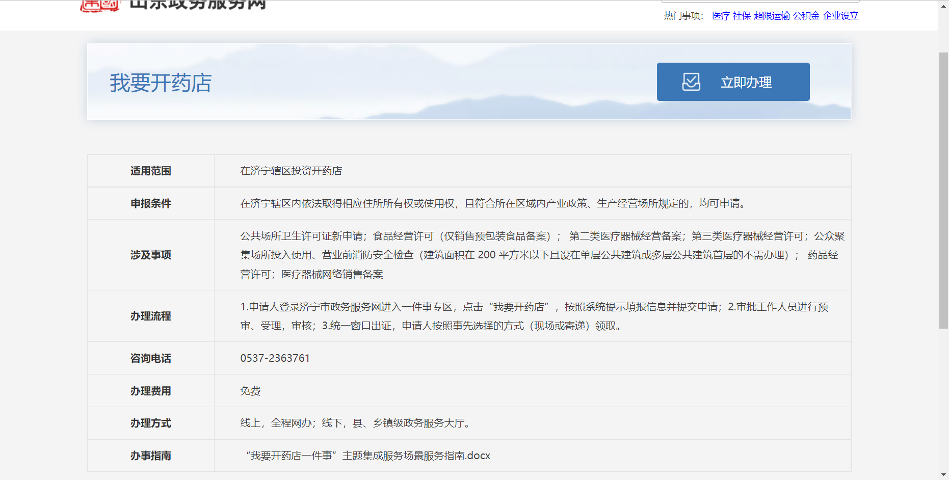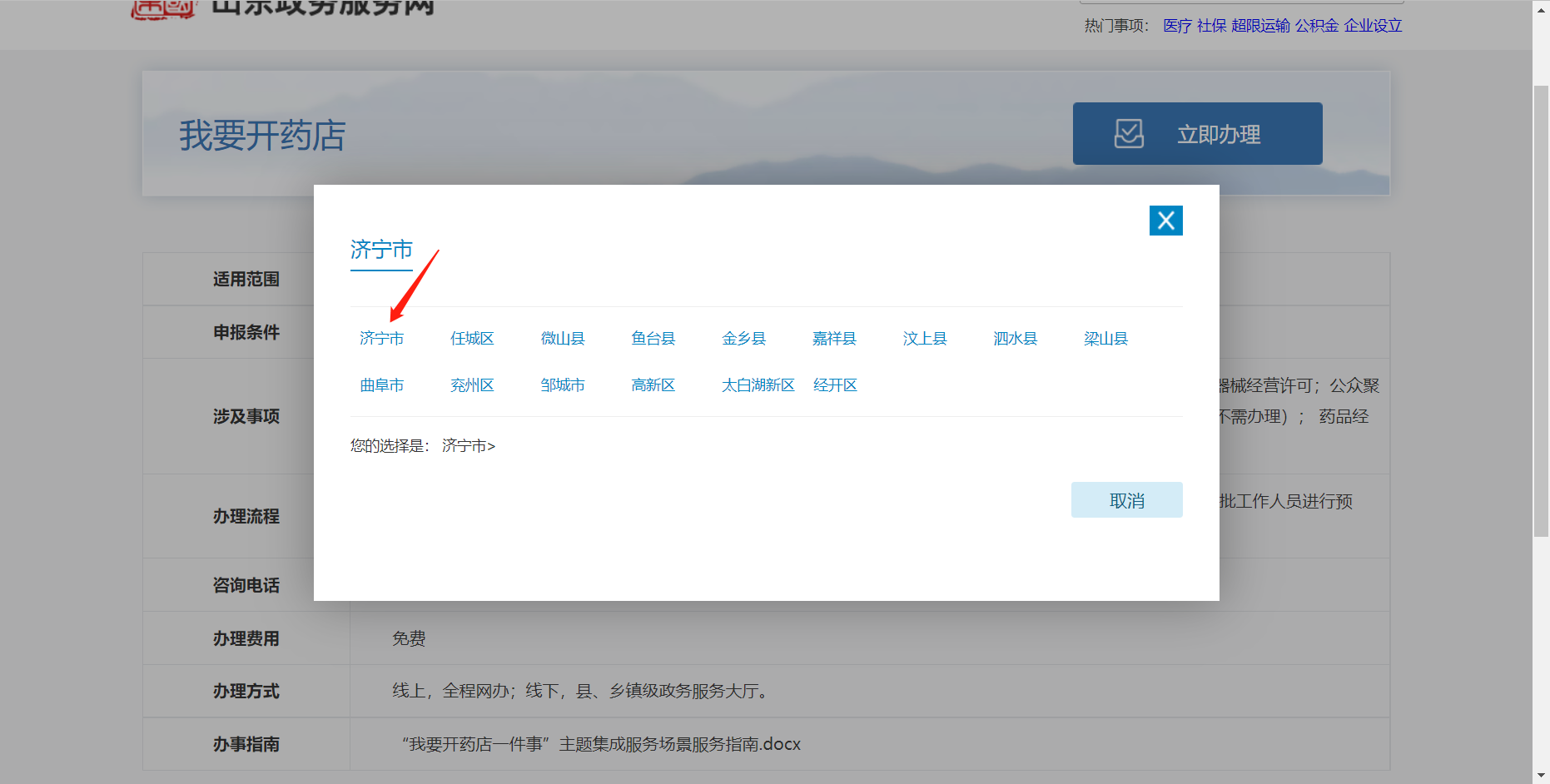 济宁市“我要开药店一件事”线上操作指南