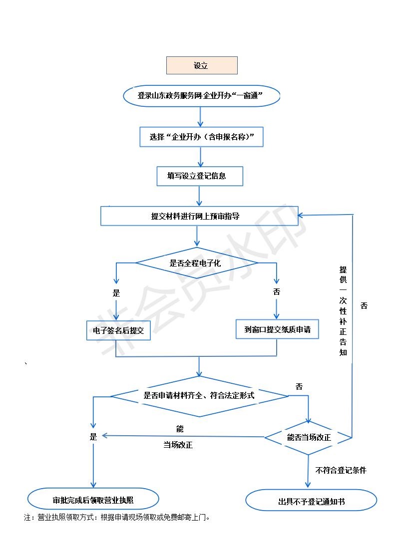 2.网上办理。山东省企业开办“一窗通”平台(http://218.57.139.23:10010/psout/)。