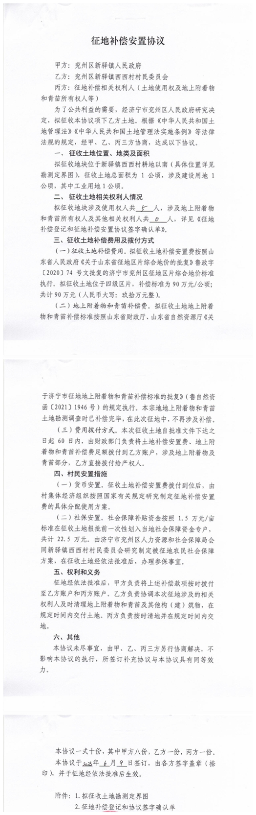 新驿镇西西村征地补偿安置协议