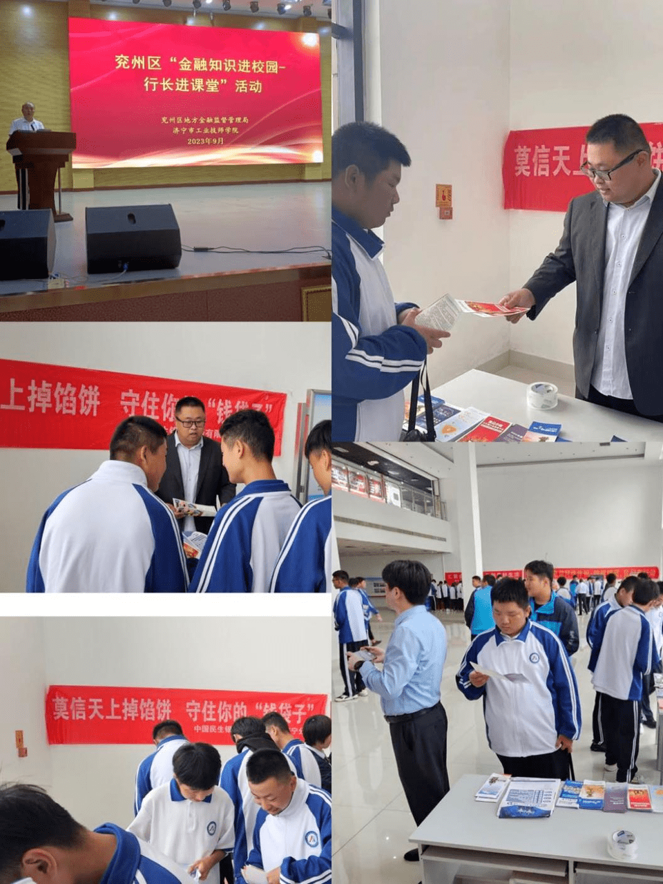 汇聚金融力量,共创美好生活。为进一步强化金融知识普及教育工作,推动金融知识进校园,广泛普及防范校园贷、电信网络诈骗等金融常识,切实增强在校学生群体的金融素养,2023年9月26日下午,兖州区地方金融监督管理局联合济宁工业技师学院、包括中国民生银行在内的19家银行机构共同开展“金融知识进校园-行长进课堂”活动。