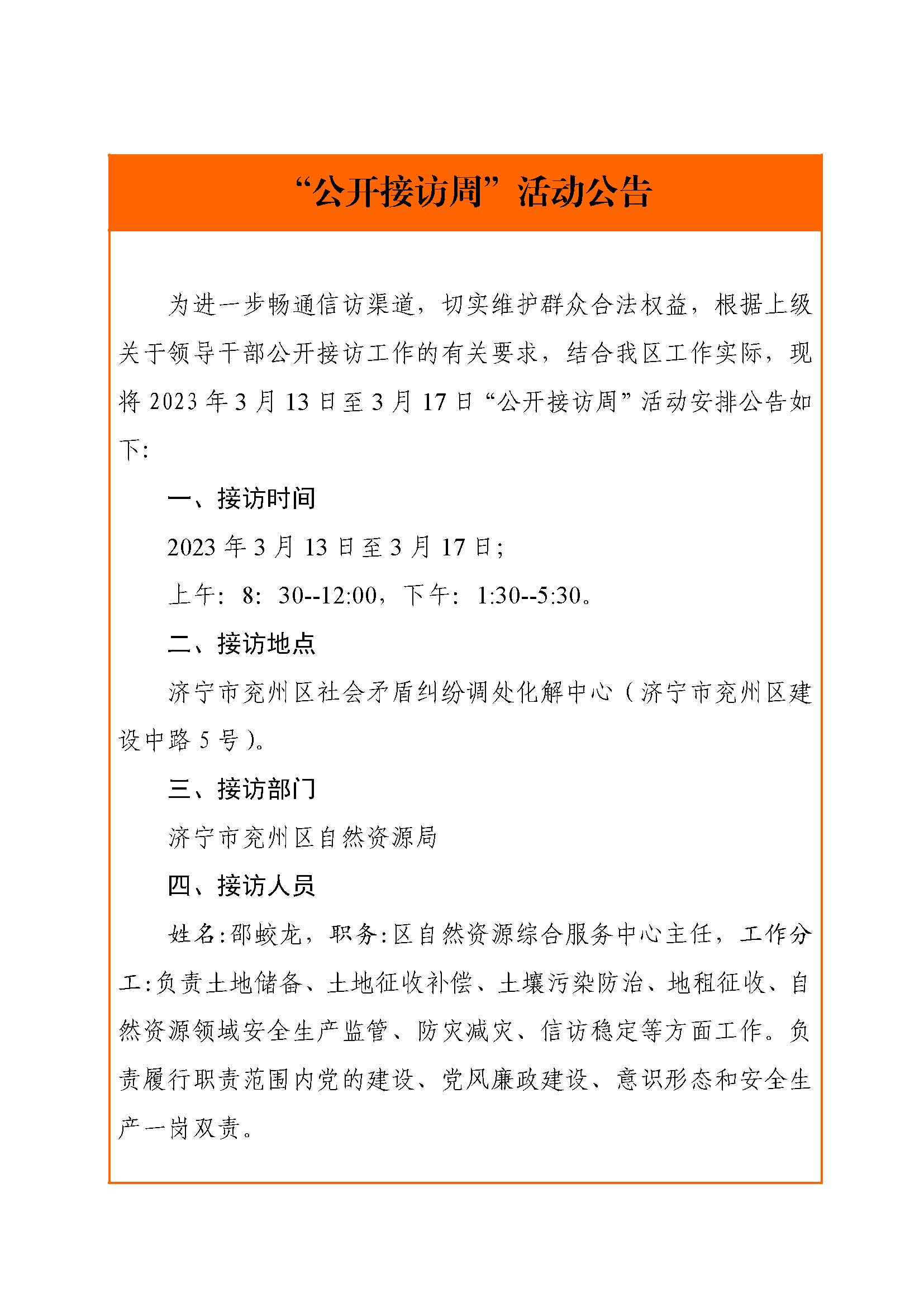 2023年3月13日至3月17日“公开接访周”活动安排