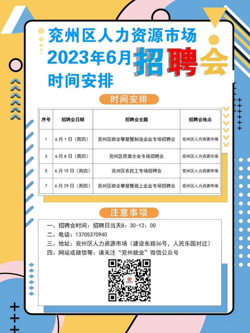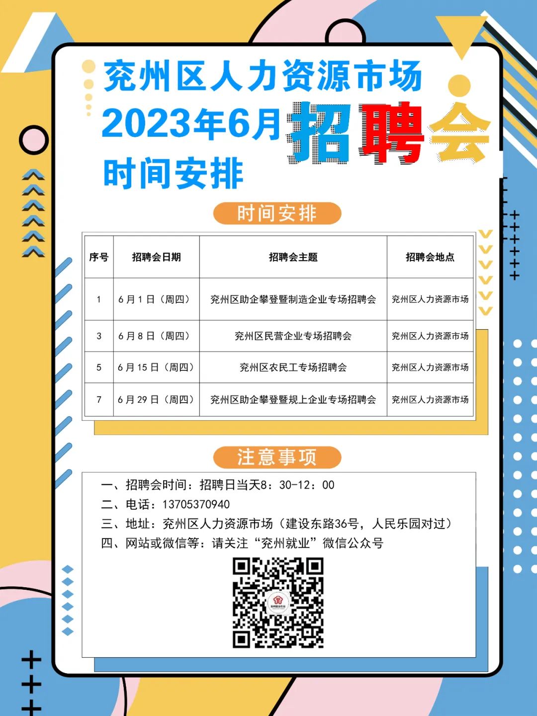【就业困难人员】兖州区人力资源市场2023年6月招聘会时间安排
