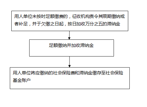 4、用人单位未按时足额缴纳社会保险费的,由社会保险费征收机构责令限期缴纳或者补足,并自欠缴之日起,按日加收万分之五的滞纳金。