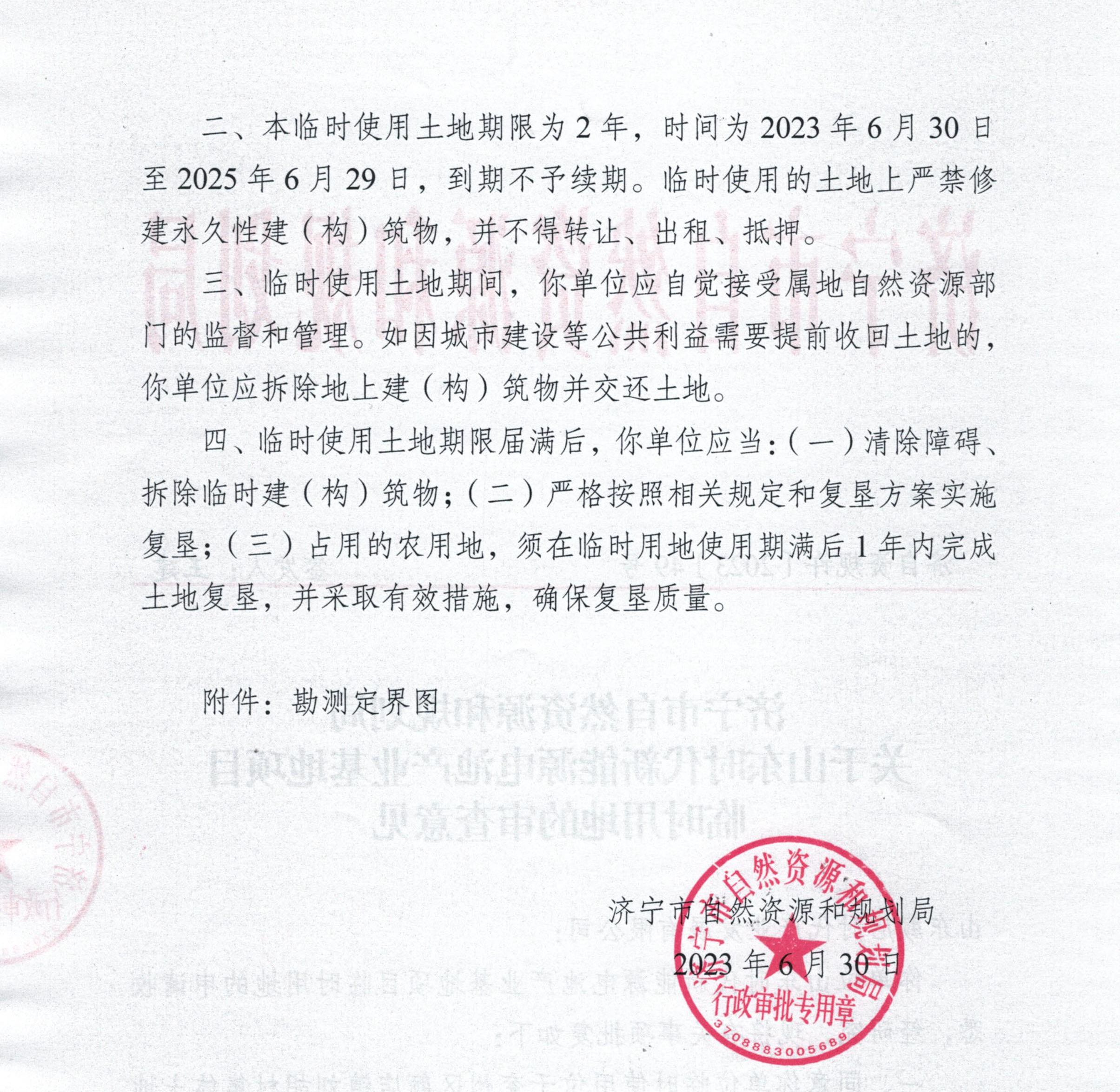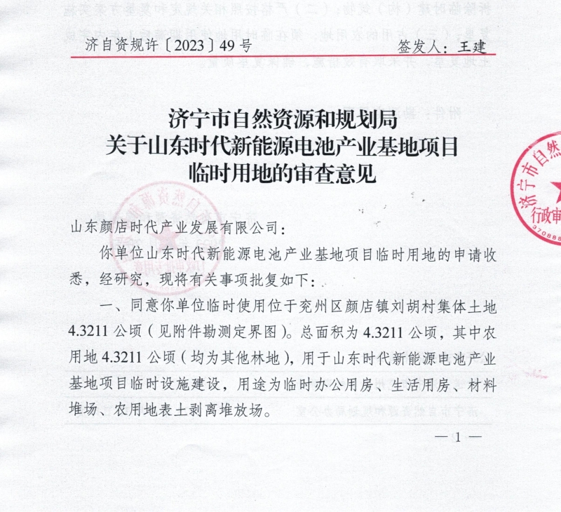 关于山东时代新能源电池产业基地项目临时用地的审查意见