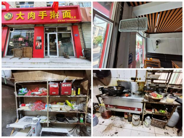 上榜理由:操作间内卫生脏乱差,设施设备未定期清理,食品原料未离地存放,灭蝇灯未开启,个人物品随意摆放。