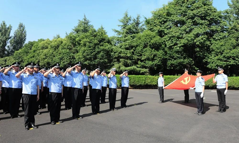 大家面对鲜红的党旗庄严宣誓,一句句铿锵的誓言,一个个紧握的拳头,一道道坚定的目光,充分展现了全体党员民警时刻以优秀共产党员标准严格要求自己、矢志不渝做党和人民忠诚卫士的坚定信念。