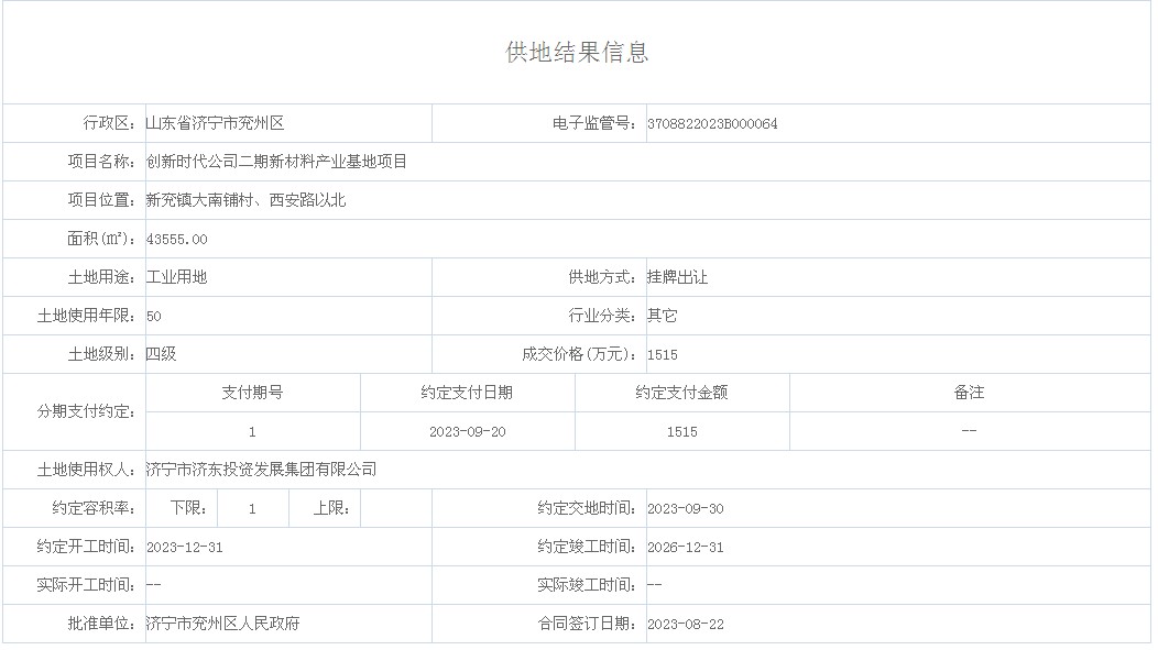 3708822023B000064创新时代公司二期新材料产业基地项目