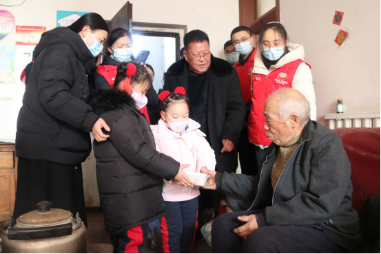 活动结束后,孩子们把包好的水饺亲手送到孤寡老人手里,发扬尊老敬老爱老的优良传统,让爱代代相传。