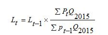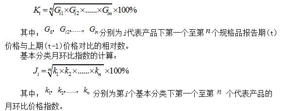 根据该代表产品下所属代表规格品价格变动相对数,采用几何平均法计算,计算公式为: