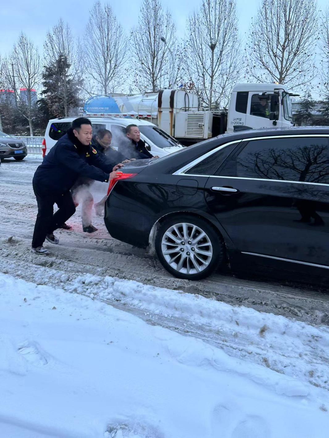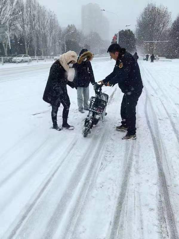 在扫雪除冰工作中,有的同志乐于助人,为摔倒的女士扶起电动车、帮打滑的车辆推上坡、帮助滑下坡的车辆抬入车行道等等,城管人昼夜坚守,全员上阵,排查安全隐患。又一次在实践中展示了城管人的可贵精神,让兖州城管这个响亮的名字温暖了寒冬。区执法局利用公众号、视频号等新媒体,发布路段扫雪除冰情况,方便市民出行;加强工作宣传,正确引导舆论导向。
