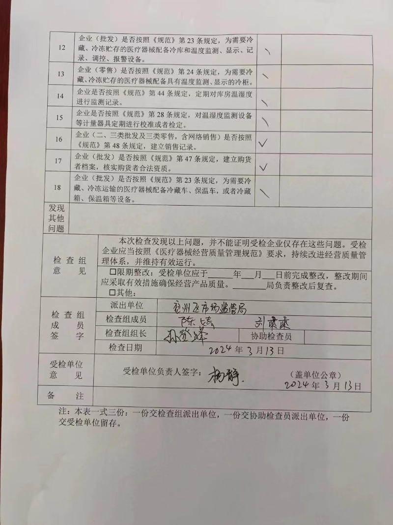 药品零售/医疗器械经营监督检查