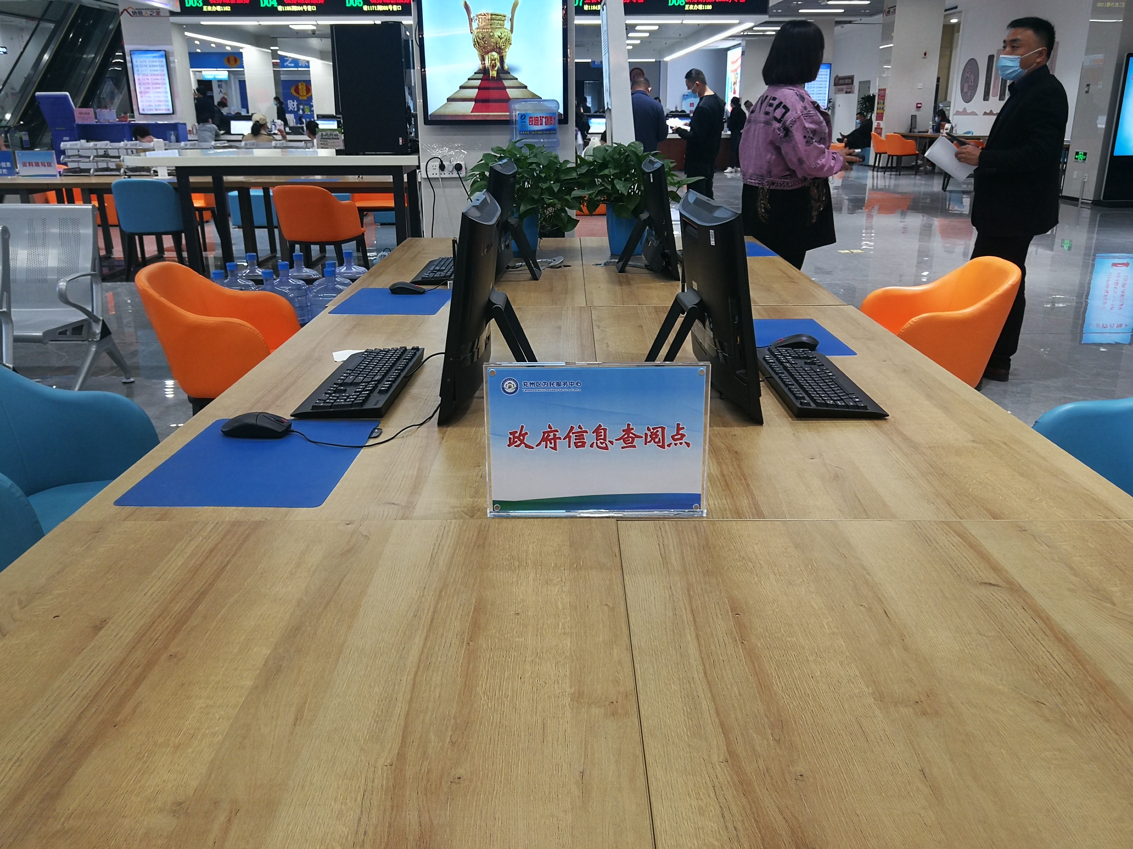 为方便公民、法人和其他组织依法获取政府信息,在位于济宁市兖州区扬州南路2号的兖州区为民服务中心二楼大厅设立政府信息查阅点,大厅内设有纸质文件查阅区、网络服务查阅区和休息区,配有电脑、触摸屏、打印机、复印机、阅览桌椅等设施设备。