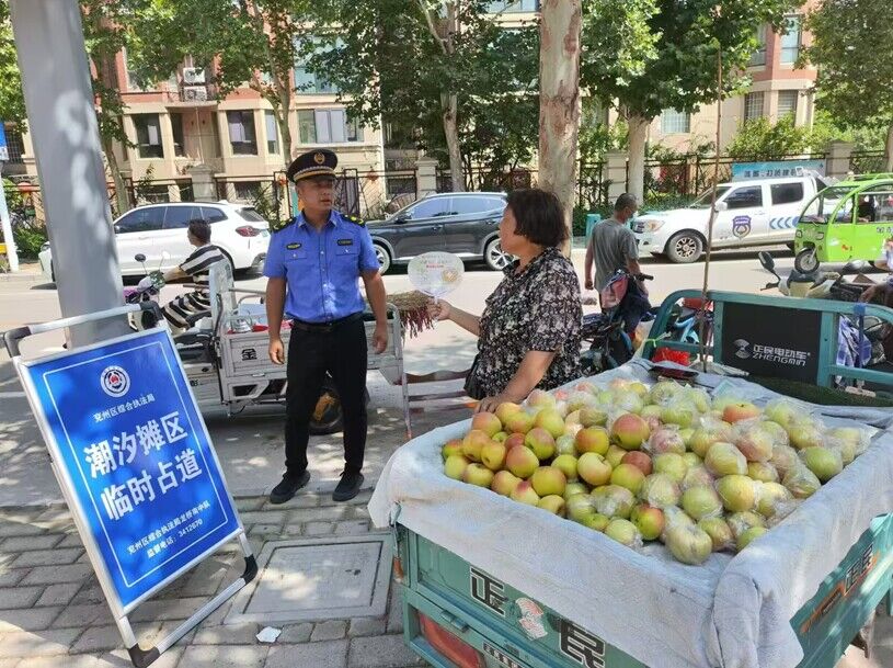 区综合行政执法局不断探索推进城市管理向好发展,借鉴先进经验,依托前期实地考察,摸排辖区人流量、群众日常生活规律、应季瓜果蔬菜的情况,并结合流动摊贩诉求进行综合研判,在不影响交通、不影响市民生活、不影响市容环境的前提下,利用辖区可用空间,按照便民利民原则,拟定施划方案,确定疏导点位置、规模及经营范围,划定经营区域。