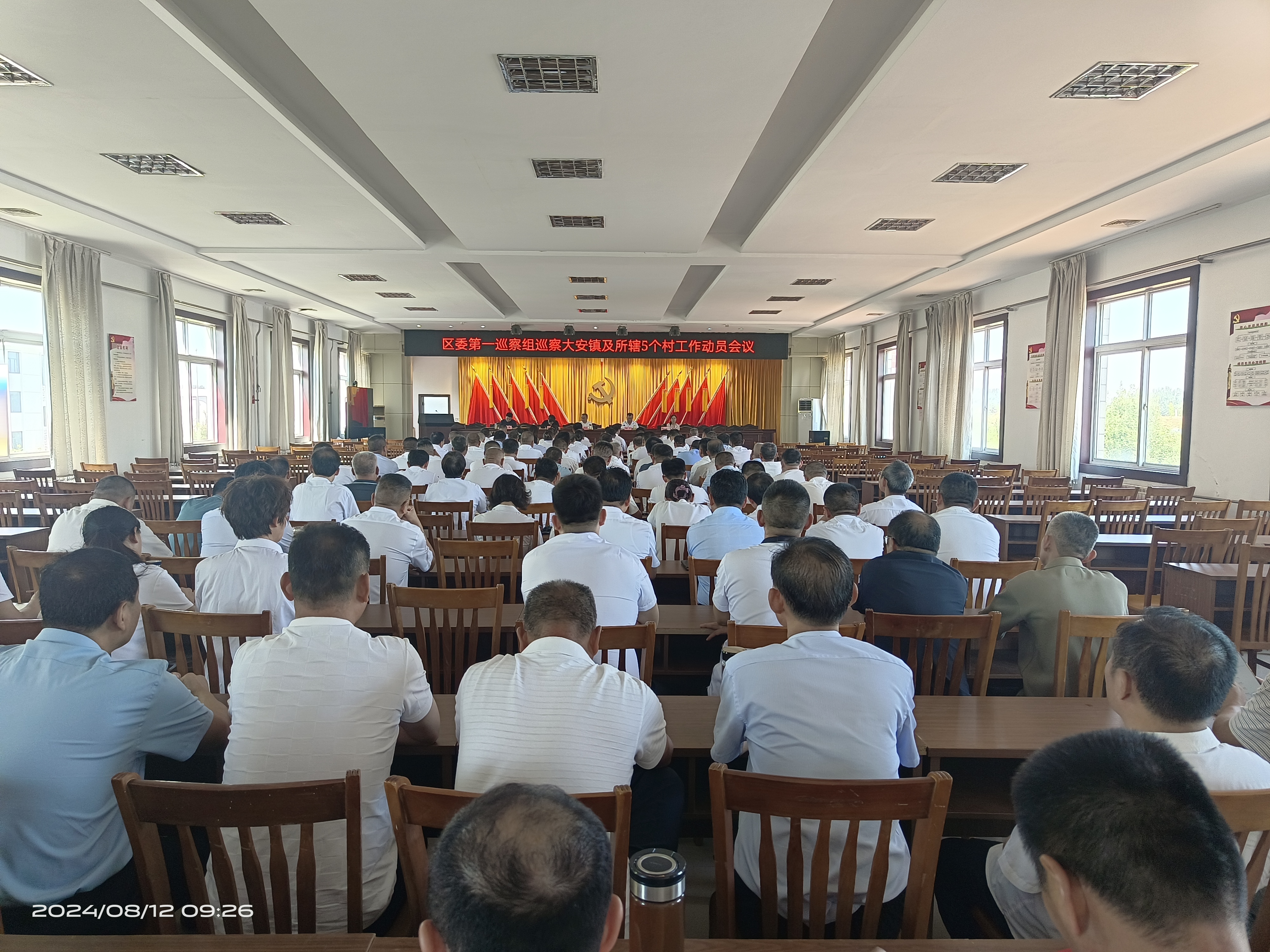 按照区委统一部署,2024年8月12日上午,区委第一巡察组巡察大安镇及所辖5个村工作动员会召开。会前,区委第一巡察组组长马洪恩主持召开与大安镇党委书记杨广喜的见面沟通会,通报了巡察任务和工作安排。会上,马洪恩就做好巡察工作作了动员讲话,被巡察村党组织书记代表白叔河作表态发言,大安镇党委书记杨广喜主持会议并作表态发言。