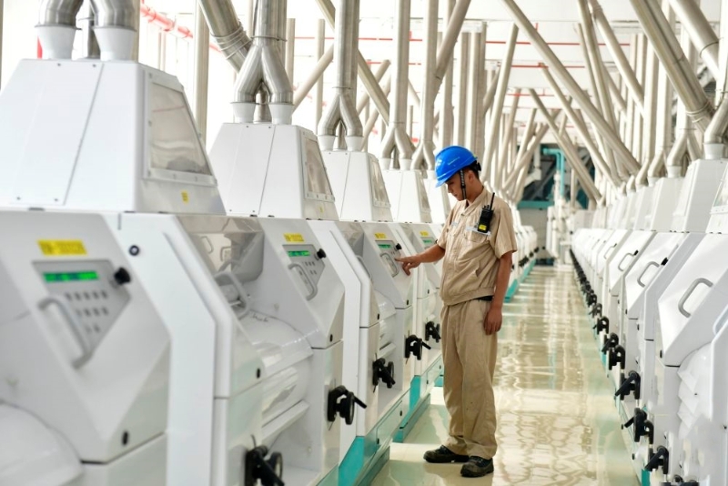 9月26日,在山东白象食品有限公司,工作人员正在方便面生产线值守。 大安镇依托镇域农业资源优势,引进益海嘉里集团、白象食品集团等龙头企业,着力培育发展食品加工产业,初步形成了以粮油深加工、方便食品生产等为主要特色的优势食品产业集群。