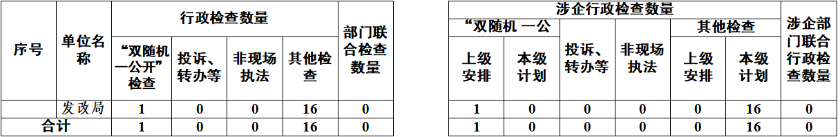 2.行政检查的次数是指检查一个检查对象,有完整、详细的检查记录,计为检查1次。无特定检查对象的巡查、巡逻,无完整、详细检查记录,检查后作出行政处罚等其他行政执法行为的,均不计为检查次数。