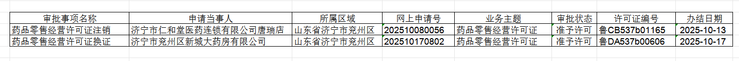 兖州区2025年药品零售许可企业基本信息(21)