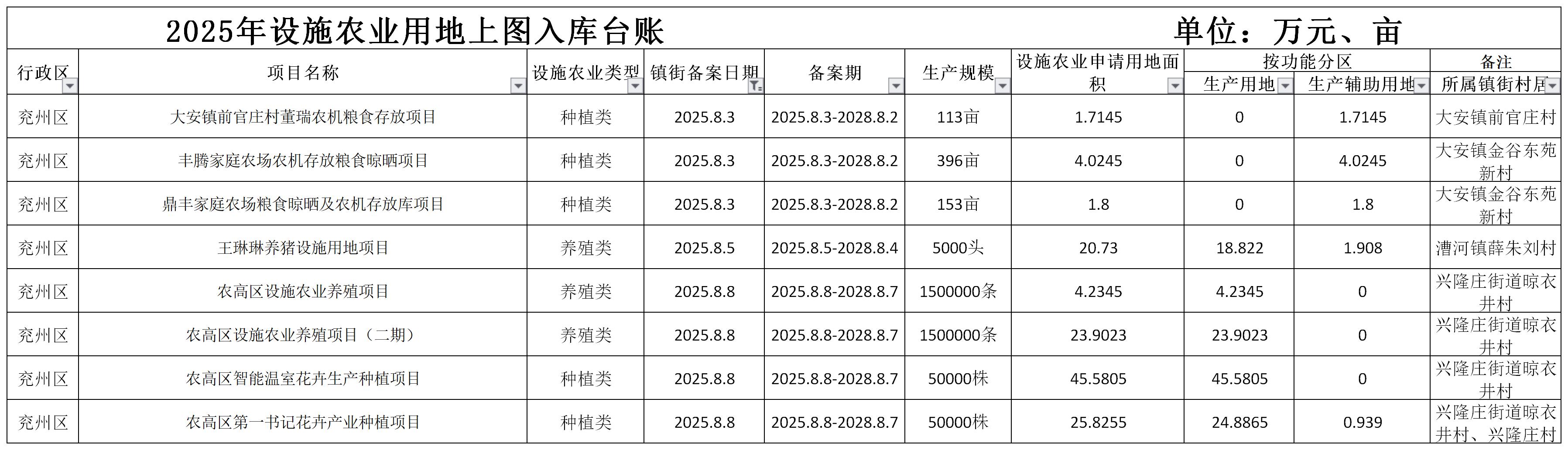 2025年设施农业用地备案信息(三)