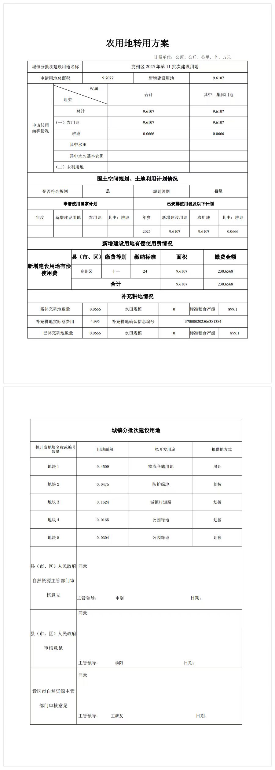 济宁市兖州区2025年第11批次城镇分批次农用地转用方案