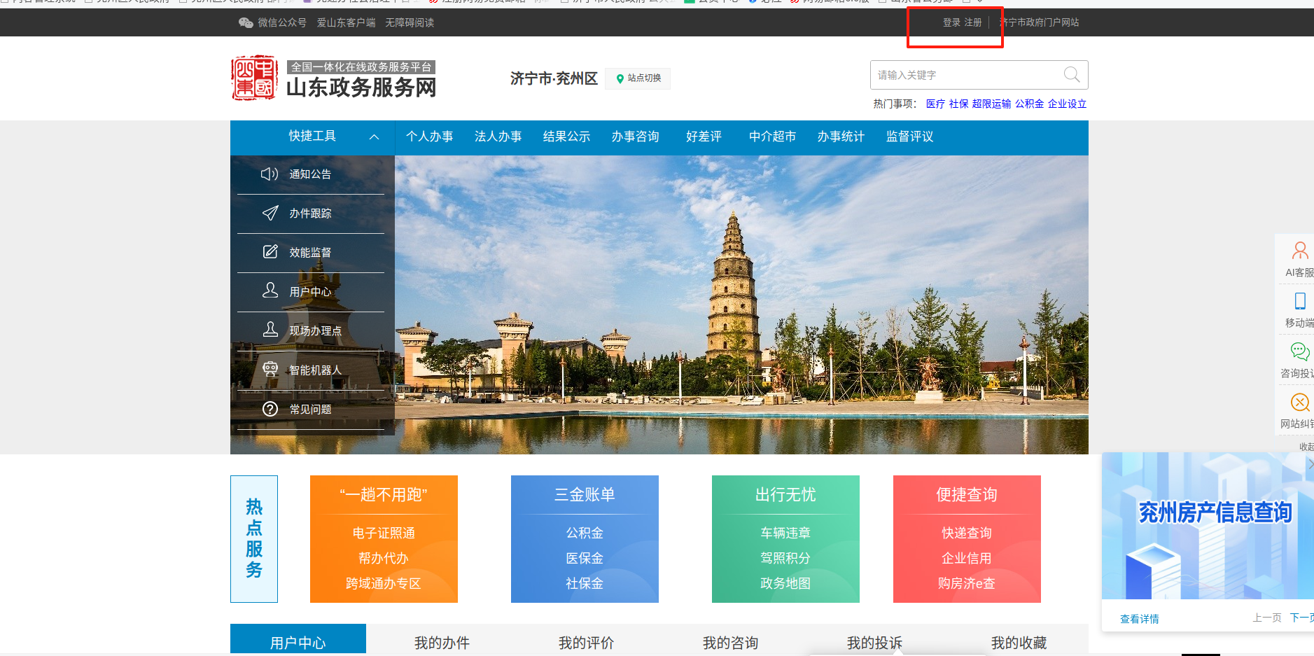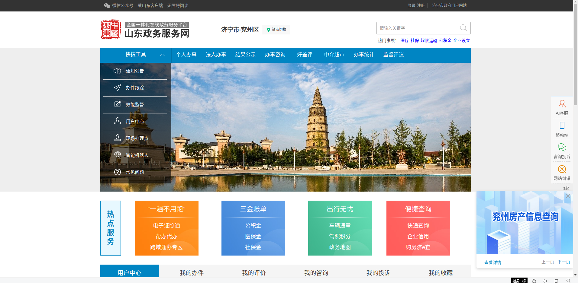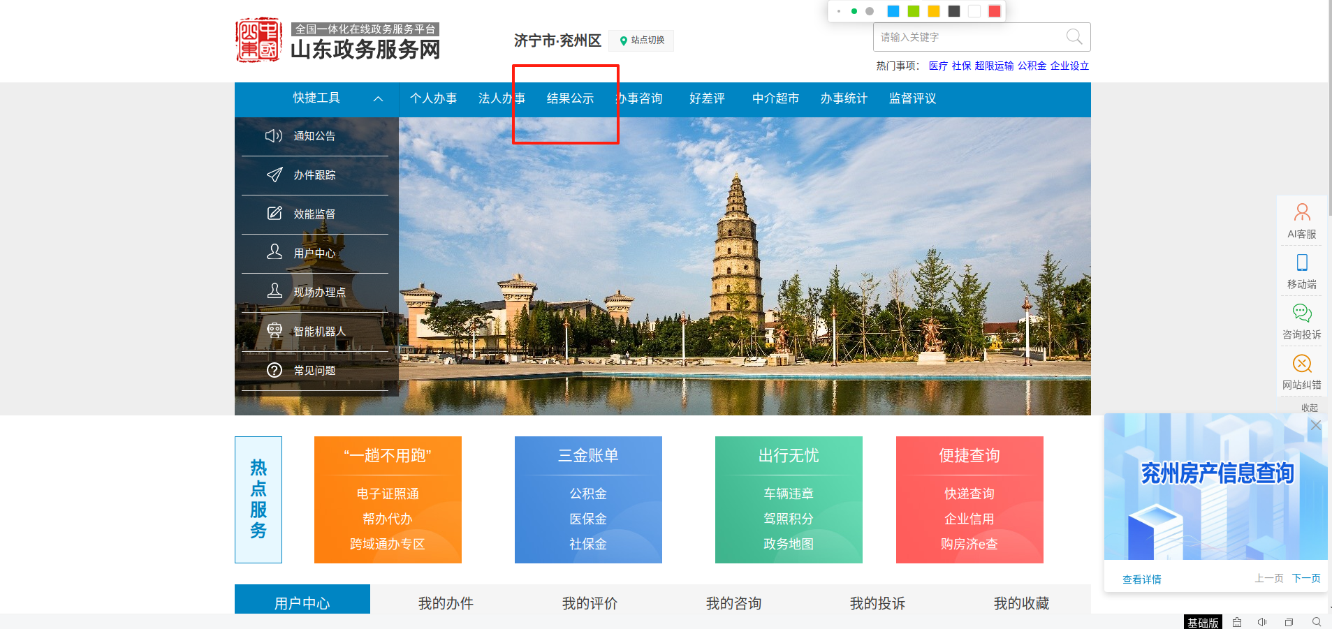 1.点击“山东政务服务网”网址:http://jiyzzwfw.sd.gov.cn/jnzwdt/epointzwmhwz/pages/default/index