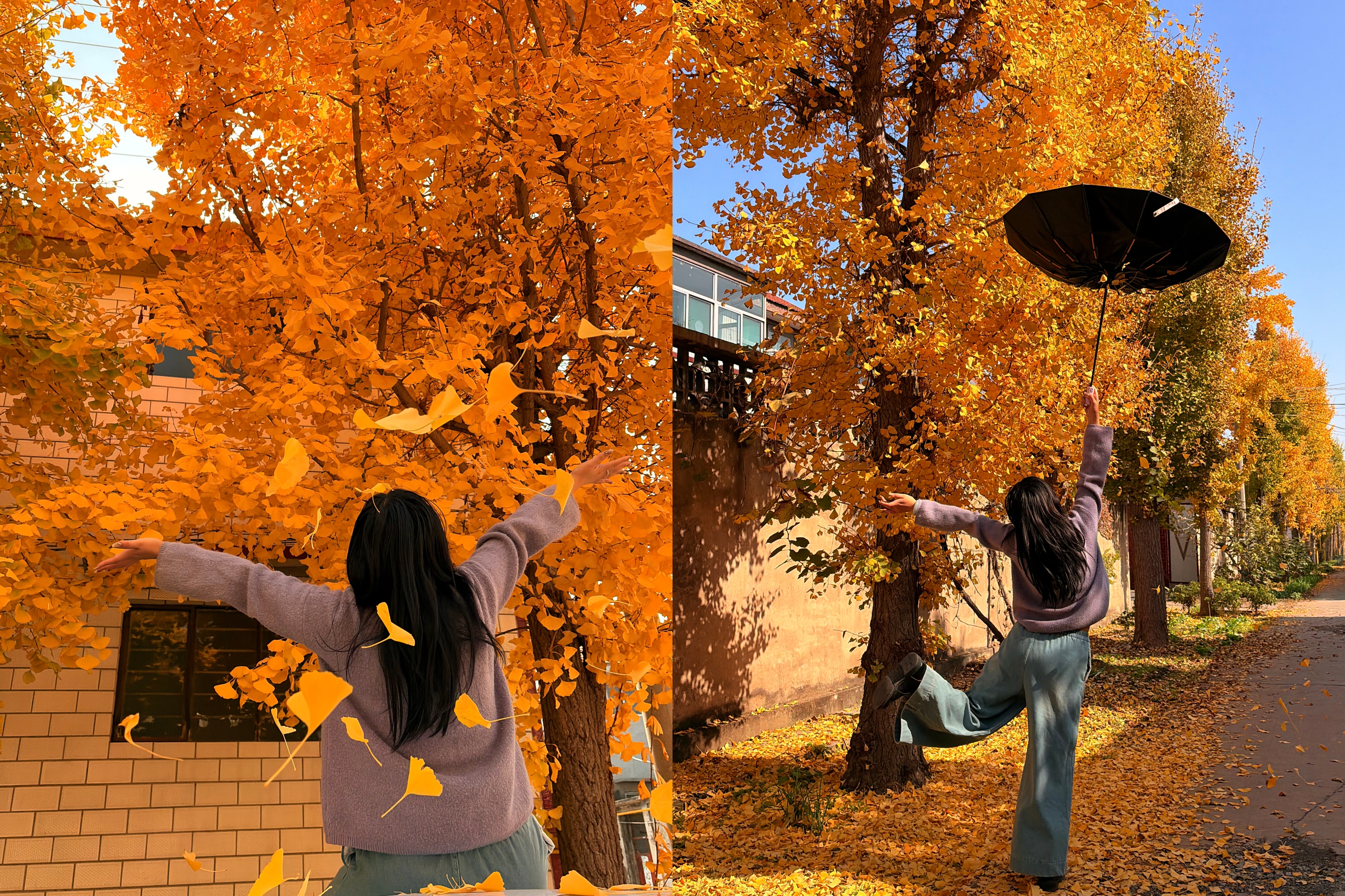 秋风轻起,万千“金蝴蝶”翩跹而下,在空中打着旋,最终优雅地铺满地面,为大地织就一条厚实而柔软的金色地毯。