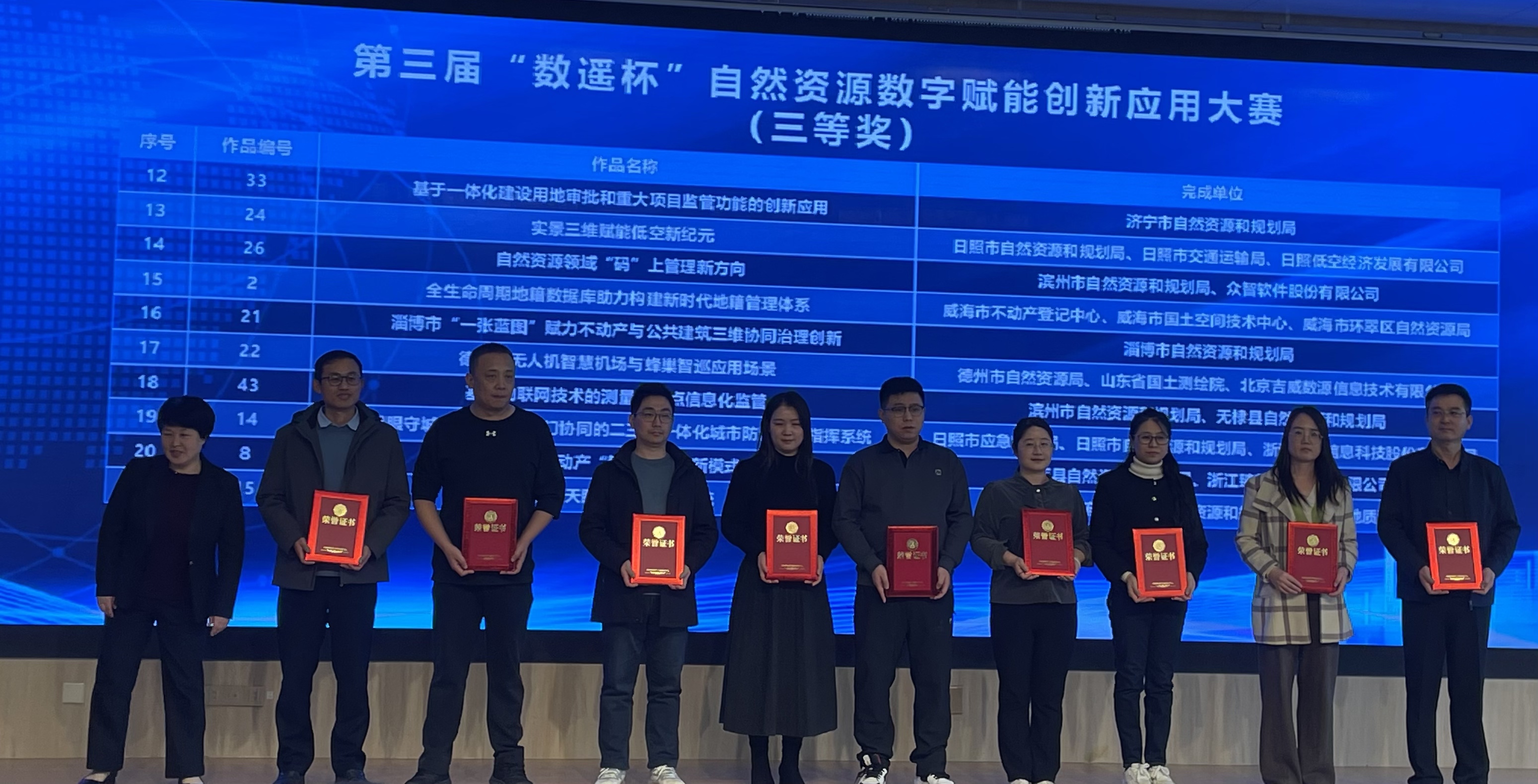 11月23日,山东省自然资源厅第三届“数遥杯”自然资源数字赋能创新应用大赛决赛在济南成功落幕。大赛以“底数清晰、问题发现、监管高效、办事便捷”为主题,着力打造一批标杆性、示范性、叫得响、用得好的创新应用场景。竞赛中,我局高度重视,精心准备,充分挖掘自然资源领域数字化应用场景,多次打磨案例内容、模拟训练,突出特色亮点,以特色应用场景,着重解决基层自然资源管理痛点、难点问题,助力自然资源工作高效开展,经过激烈角逐,我局的参赛作品《“数治自然,智绘兖州”——慧兖平台构建城市精细化治理新底座》荣获三等奖。