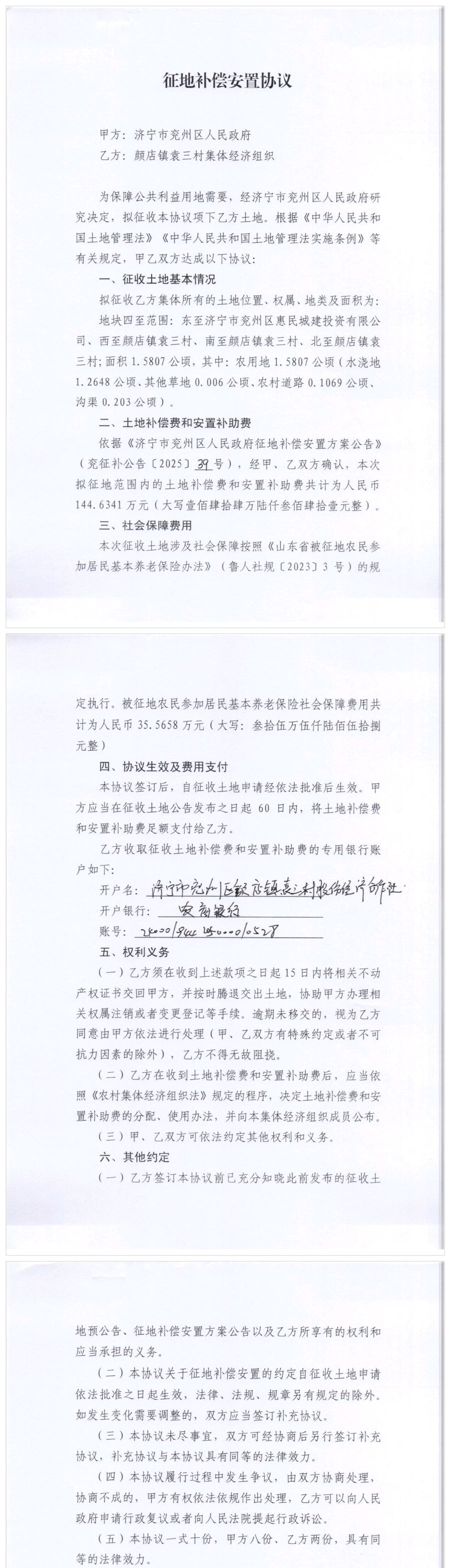 征地补偿安置协议(所有权人) 颜店镇袁三村